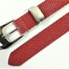 Curea din piele naturala rosie cu catarama metalica argintie 5 cm