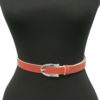Curea din piele sintetica rosie,mata cu catarama metalica argintie 2cm