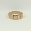 Curea din piele sintetica culoare roz-aurie prevazuta cu catarama metalica argintie/aurie, latime 7cm. Marimea S are lungimea totala 95 cm si talia de 75 cm (reprezinta lungimea masurata din bara cataramei pana la gaura din mijloc a curelei). Marimea M are lungimea totala 105 cm si talia de 85 cm (reprezinta lungimea masurata din bara cataramei pana la gaura din mijloc a curelei).