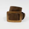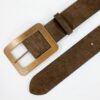 Curea de dama din piele intoarsa maro ,aspect mat prevazuta cu catarama metalica dreptunghiulara finisaj antic brass 4cm.