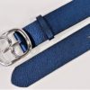 Curea din piele naturala albastra finisaj metalizat prevazuta cu catarama metalica argintie,latime 4cm
