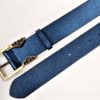 Curea din piele naturala albastra finisaj metalizat prevazuta cu catarama metalica antic brass latime 4cm