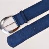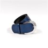 Curea din piele naturala albastra finisaj metalizat prevazuta cu catarama metalica argintie latime 6cm