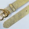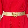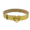 Curea de dama din piele naturala aurie prevazuta cu catarama metalica aurie in forma de inima,latime 4 cm.