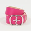 Curea din piele naturala ciclam prevazuta cu catarama metalica argintie,latime 4cm