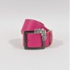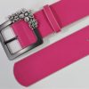 Curea din piele naturala ciclam prevazuta cu catarama metalica finisaj negru mat cu ornament floral atasat ,latime 5cm