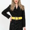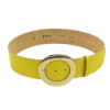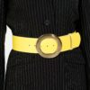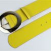 Curea de dama din piele naturala galbena cu aspect mat prevazuta cu catarama metalica rotunda aurie ,latime 6cm .