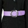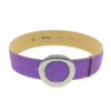 Curea de dama din piele naturala lila cu print croco si catarama metalica rotunda argintie 6cm