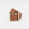 Curea din piele naturala maro prevazuta cu catarama metalica antic brass ,latime 6cm