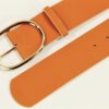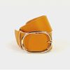 Curea din piele naturala mustar prevazuta cu catarama metalica aurie latime 5.5cm