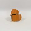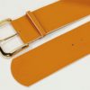 Curea din piele naturala mustar prevazuta cu catarama metalica aurie latime 8cm