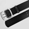 Curea din piele naturala neagra prevazuta cu catarama metalica argintie si doua ace latime 4.5cm