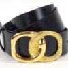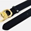 Curea din piele naturala neagra prevazuta cu catarama metalica aurie ,latime 4cm