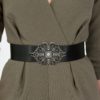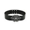 Curea din piele naturala neagra prevazuta cu aplicatie florala metalica ,finisaj antic silver si sistem de inchidere prin riveti metalici ,latime 5cm