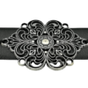 Curea piele naturala neagra cu aplicatie florala metalica antic silver 5cm