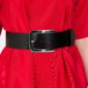 Curea din piele naturala neagra ,lucioasa prevazuta cu catarama metalica argintie lata de 5 cm.