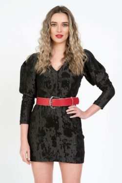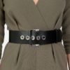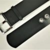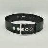 Curea din piele naturala neagra ,lucioasa prevazuta cu catarama metalica argintie si ocheti metalici latime 6 cm.