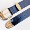 Curea din piele naturala neagra prevazuta cu catarama metalica si accesorii (gaica si capat curea) in finisaj auriu latime 4cm