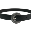 Curea din piele naturala neagra ,lucioasa prevazuta cu catarama metalica ,argintiu antichizat ,lata de 2.5 cm