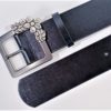 Curea din piele naturala neagra prevazuta cu catarama metalica finisaj negru mat cu ornament floral atasat ,latime 5cm