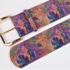 Curea din piele naturala multicolora cu motive florale prevazuta cu catarama metalica aurie latime 8cm