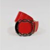 Curea din piele naturala rosie lucioasa prevazuta cu catarama metalica finisaj negru lucios latime 6cm