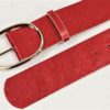 Curea din piele naturala rosie aspect metalizat prevazuta cu catarama metalica aurie latime 5.5cm