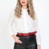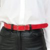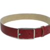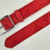 Curea de dama din piele naturala rosie cu print ce imita pielea de sarpe prevazuta cu catarama metalica argintie dreptunghiulara,latime 3cm.