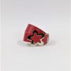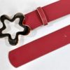 Curea din piele naturala rosie prevazuta cu catarama metalica aurie in forma de floare ,latime 4.5cm