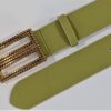 Curea din piele naturala verde prevazuta cu catarama metalica finisaj auriu antichizat ,latime 4cm
