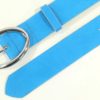 Curea din piele sintetica albastra cu aspect mat prevazuta cu catarama metalica ovala argintie ,latime 3.5cm