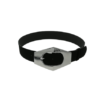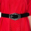 Curea din piele sintetica neagra-nabuc ,aspect mat si catarama metalica forma hexagonala argintie, latime 4 cm.