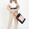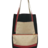 Geanta de cumparaturi multicolora(negru,bej,rosu) din piele sintetica prevazuta cu un portofel patrat in ton cu geanta ce se inchide cu fermoar .