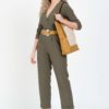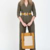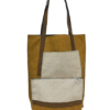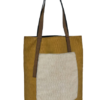 Geanta de cumparaturi multicolora(camel,bej,maro) din piele sintetica prevazuta cu un portofel patrat in ton cu geanta ce se inchide cu fermoar .