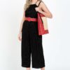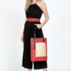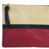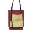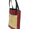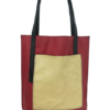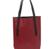 Geanta de cumparaturi multicolora(rosu,bej negru) din piele sintetica prevazuta cu un portofel patrat in ton cu geanta ce se inchide cu fermoar .
