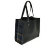 Geanta din piele naturala neagra captusita pe capete cu stofa caro