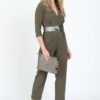 Set dama doua piese format din plic si curea piele sintetica gun metal