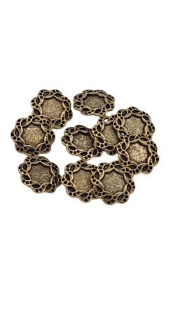 Set 10 nasturi metalici cu picior in culoare auriu invechit si model floare L.40 (2.5 cm)