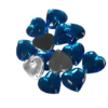Pietre din nylon in forma de inima prevazute cu doua gauri ce se poate coase sau pot fi folosite ca rol decorativ,culoare bleu ,dimensiuni 1.5cm x 1.5cm