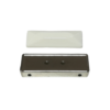 Piatra din nylon dreptunghiulara ,decorativa culoare alb-nichel formata din doua parti componente,prevazuta cu orificii pentru cusut .latime 1cm ,inaltime 2.7cm .