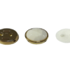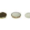 Piatra din nylon ovala ,decorativa culoare alb-auriu formata din doua parti componente,prevazuta cu orificii pentru cusut ,diametru 1.2cm/1.6cm