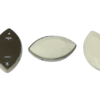 Piatra din nylon decorativa ovala culoare alb-nichel formata din doua parti componente,prevazuta cu orificii pentru cusut .latime 1.9cm,inaltime,inaltime 3.3cm