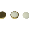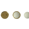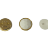 Piatra din nylon rotunda ,decorativa culoare alb-auriu formata din doua parti componente,prevazuta cu orificii pentru cusut ,diametru 1.45cm.