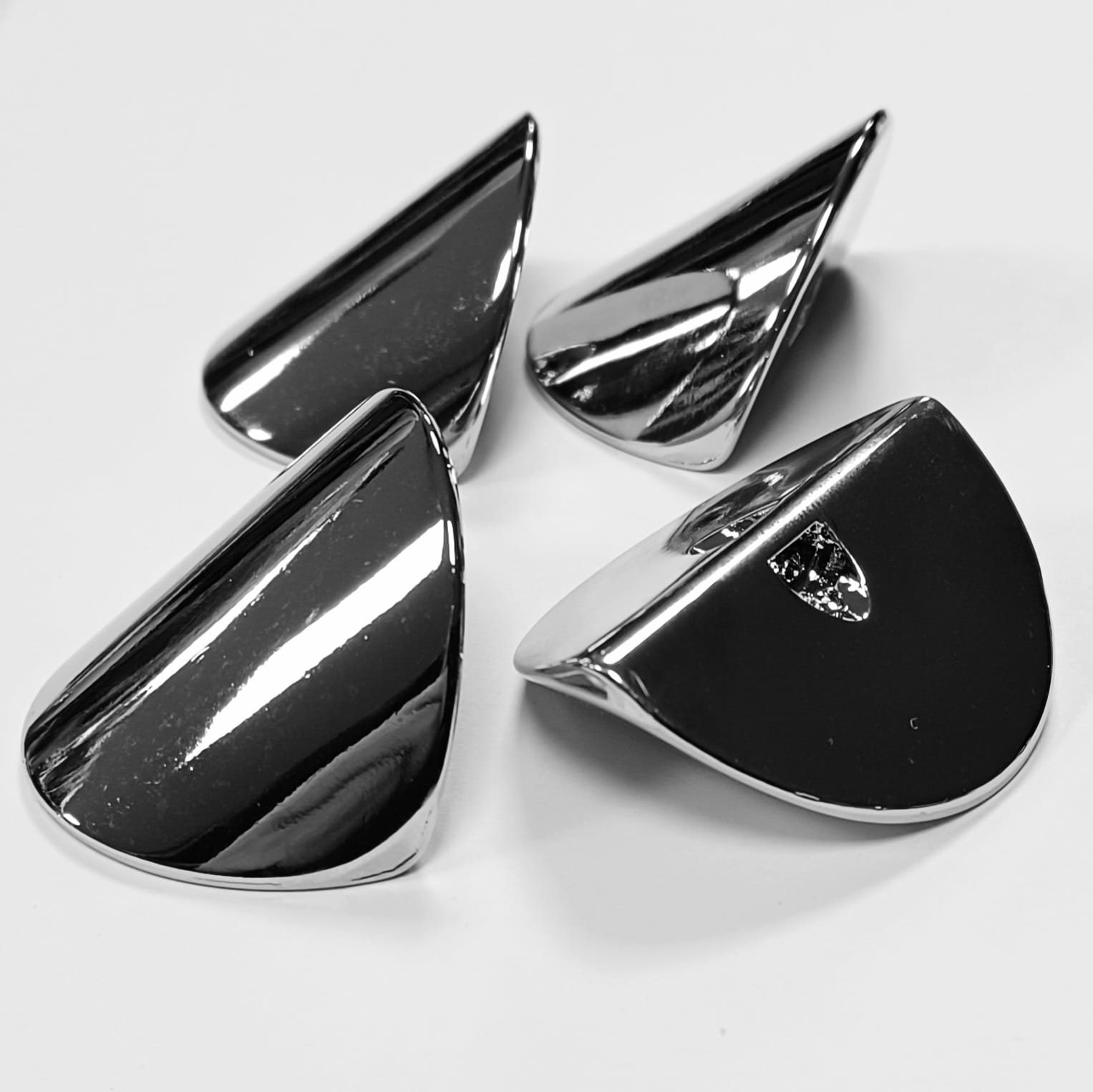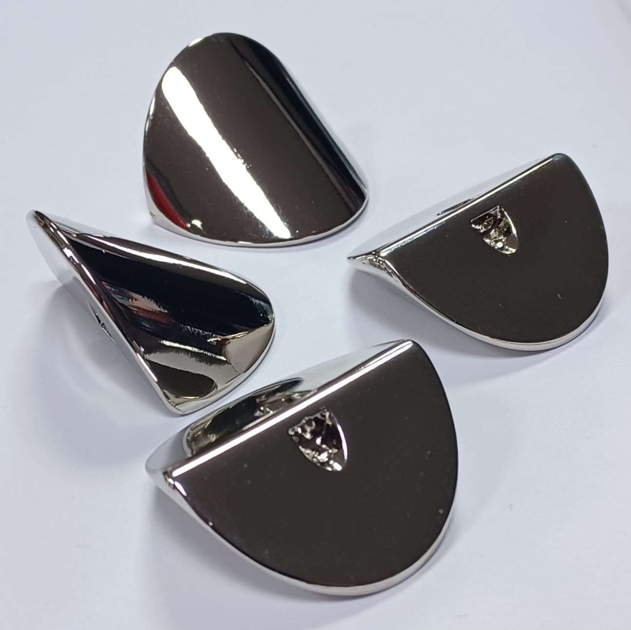 Nasturi din nylon cu gauri de prindere finisaj argintiu lucios diametru 38mm , inaltime 14mm .