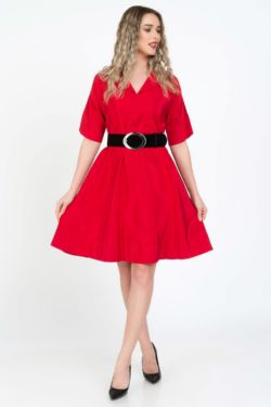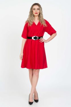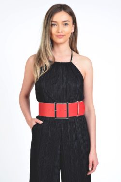 Curea piele sintetica rosie ,mata cu catarama metalica argintie 8cm