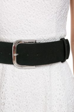 Curea din piele sintetica neagra-nabuc cu catarama metalica argintie ovala ,6cm