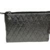 Set cadou format din doua piese : Plic din piele sintetica negru lucios(gun metal),aspect metalizat cu fermoar si accesorii argintii ,dimensiuni 29×21 si curea din piele sintetica gri metalizat cu catarama arginite ,dimensiuni 105 – 95 x 6cm