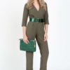 Set dama doua piese format din plic si curea piele naturala verde metalizat .