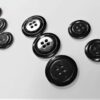Nasturi din poliester negri finisaj lucios prevazuti cu patru gauri de prindere diametru 1.9cm si 2.5cm