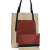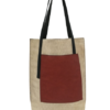 Geanta de cumparaturi multicolora(bej,rosu,negru) din piele sintetica prevazuta cu un portofel patrat in ton cu geanta ce se inchide cu fermoar .